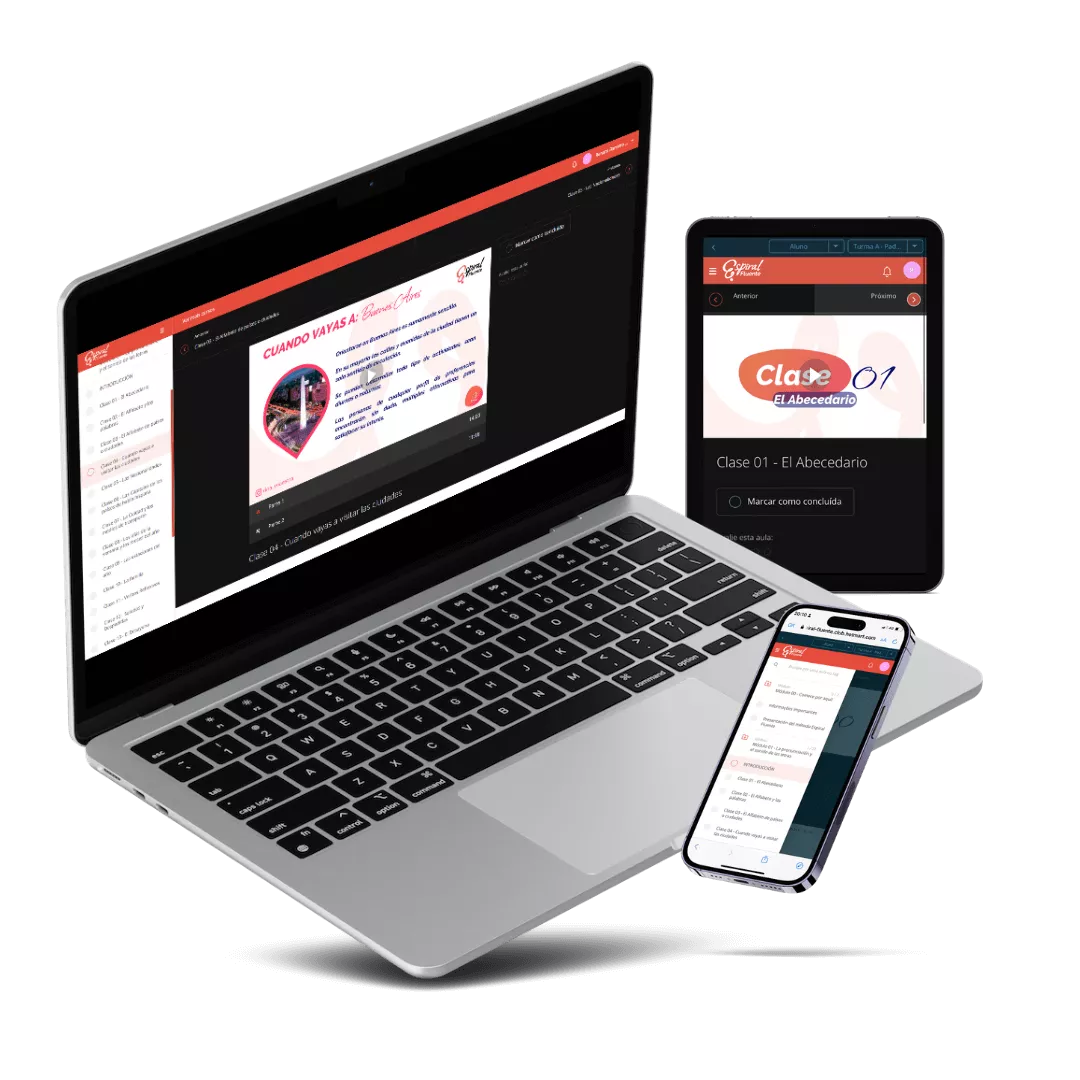 Ao longo do curso, o aluno explora situações cotidianas para desenvolver conversas naturais no dia a dia. Através das aulas da Maestra Rina, que abordam as rotinas diárias mais comuns em países de língua hispânica, o aluno se torna capaz de se expressar de forma eloquente em diversos contextos. Isso proporciona um aprendizado alegre e prático.