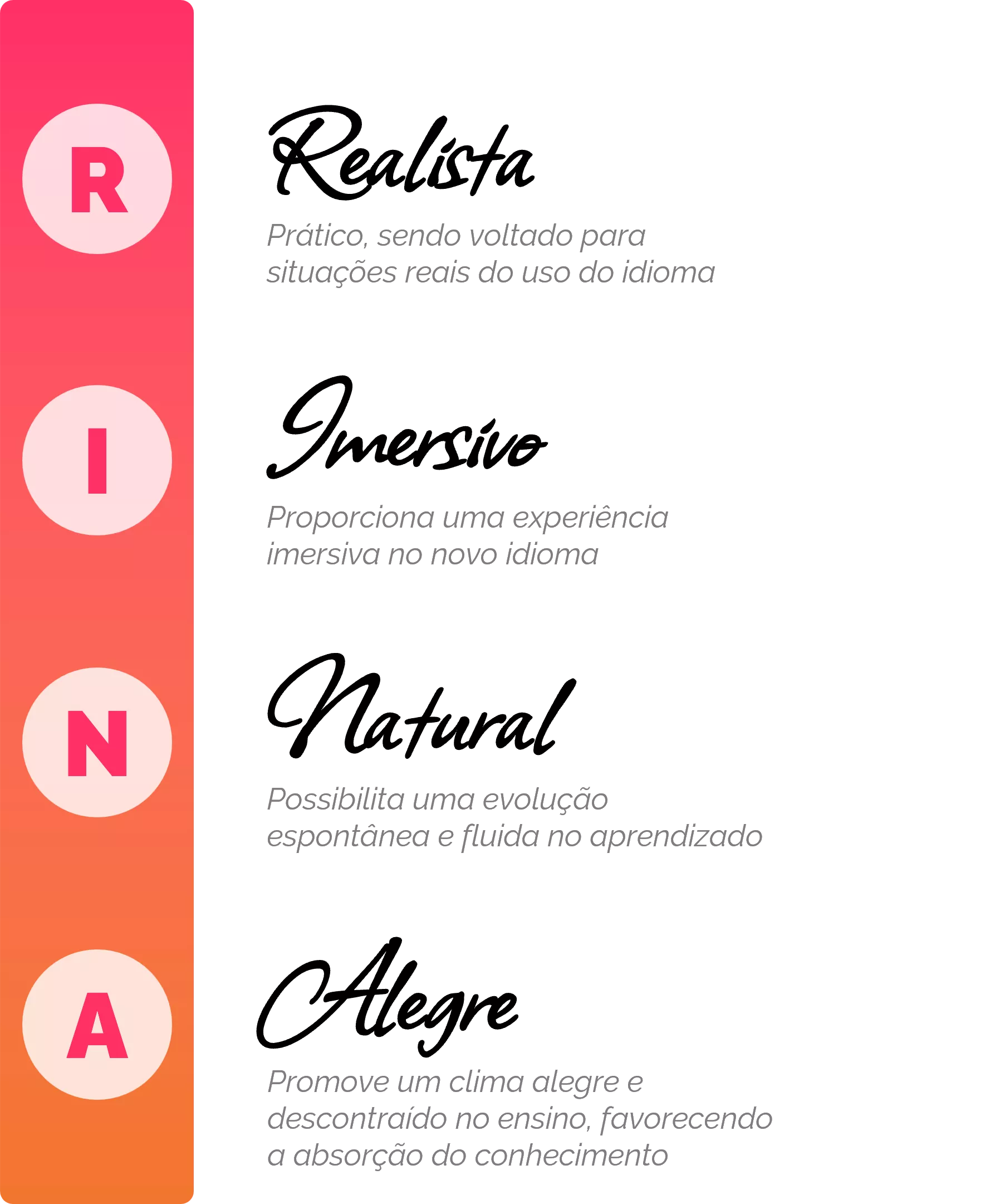 E assim, surgiu a ideia de criar um método que desafiasse a norma, um caminho que priorizasse a fluência natural e celebrasse a alegria de aprender. Foi nessa busca que nasceu o Método RINA, uma abordagem que despertou transformação na vida dos meus alunos, assim como transformara a minha.